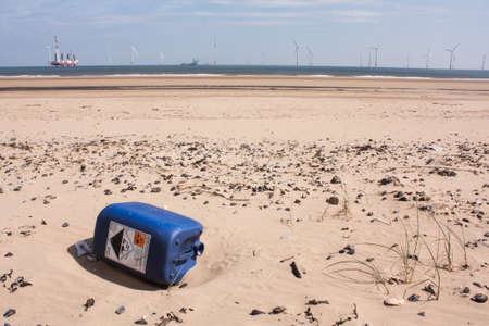 Pollution, dry plastic, containers, and other waste that pollute the oceans and beaches