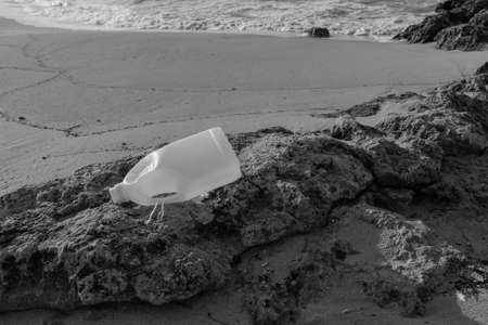 Environmental pollution and disposable plastic bottle on beach