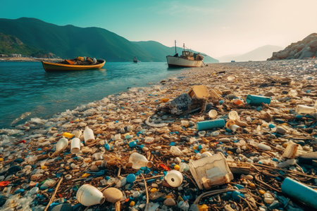 Polluted shore view for good environment awareness photo