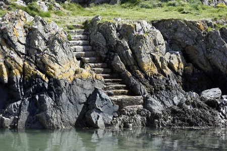 Steps cut into the rocky Galloway coastline