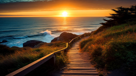 Torrey Pines Trail Sunset in the Pacific., generative AI