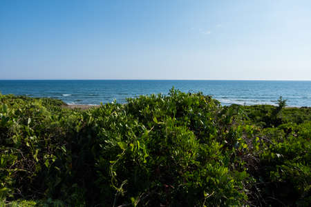 Sunset at Japanese sea and green plant.Summer landscape.Vladivostok,Russia