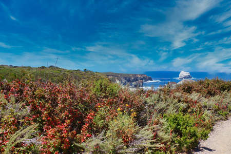 Beautiful dunes' plants in autumn. Atlantic ocean coast in Portugal.