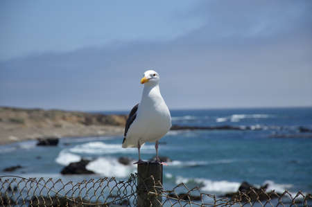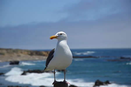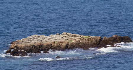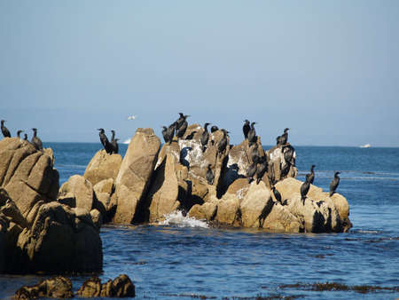 View of bird rocks and cliffs along Pacific Coast Highway 1 in California, a habitat and refuge for brown pelicans, cormorants, black oystercatchers, harbor seals, and western gulls, United States
