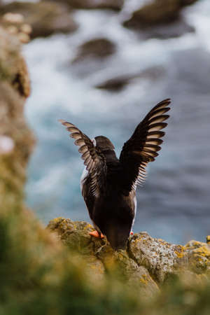 An Atlantic Puffin colony on the cliffs of Grimsey Island, Iceland