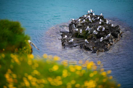 Beautiful seagulls sitting on cliff in Olafsvik ,iceland.