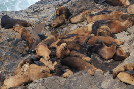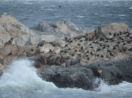 South American sea lion, Otaria flavescens, breeding colony and haulout on small islets just outside Ushuaia.