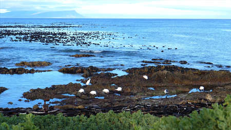 colony of black oystercatcher (haematopus bachmani) in Hermanus, South Africa