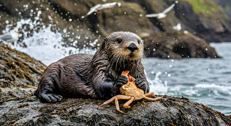 Capture mesmerizing moments of interaction between coastal wildlife magnificent creatures and their coastal habitats, showcasing the delicate balance between land and sea.