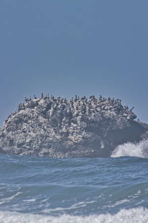 Seagulls in a rock in the coast of Chile. Pacific Ocean