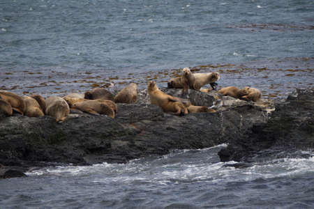 group of seals and sea lions, Beagle Channel, Ushuaia, Argentina, Patagonia