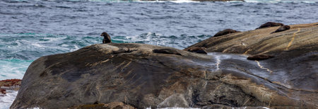 Kangaroo Island coastal view with Fur Seals on the rocks, South Australia