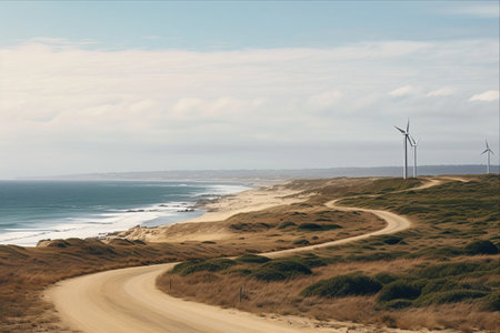 A Stunning View of Morgans Beach Cape Jervis with the Serene Starfish Windfarm in South Australia