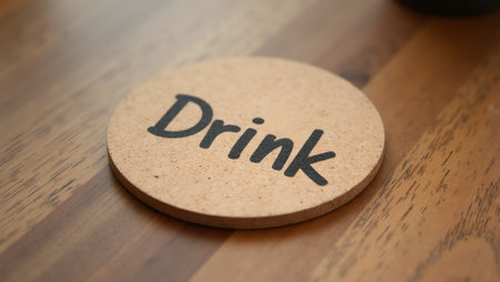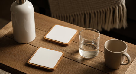 Minimalist Drink coaster on rustic wooden coffee table