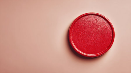 A circular red plastic lid rests on a smooth, pink background. Soft, diffused light highlights the textured surface of the lid, and minimalist scene.