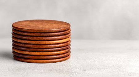 Stack of Minimalist Wooden Coasters on Neutral Background