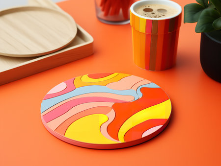 A Cup Of Coffee And Colorful Coasters. Generative AI