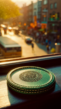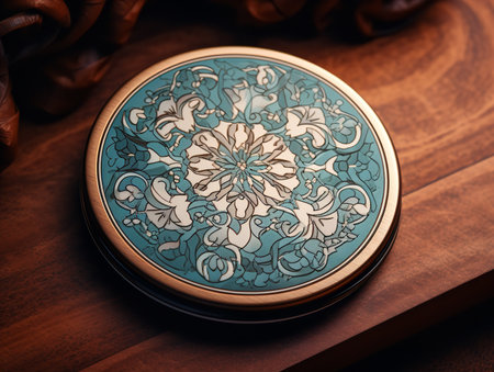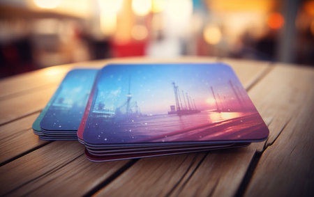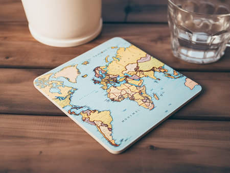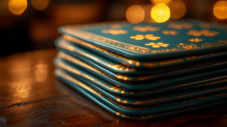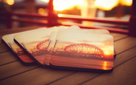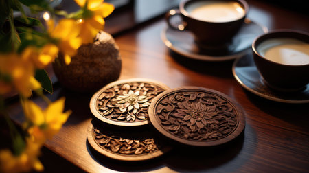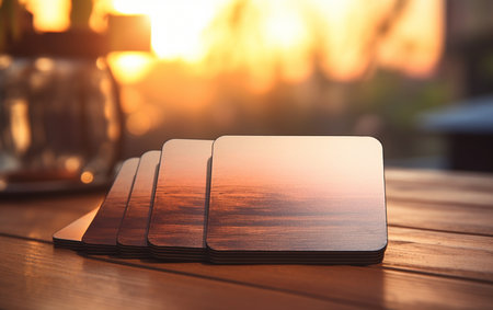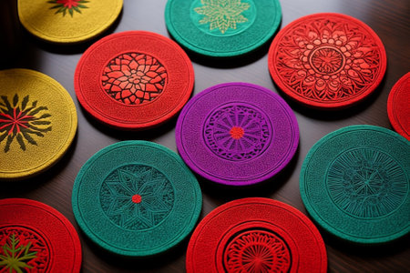 A group of coasters sitting on top of a table. AI generative image.