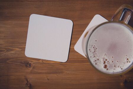 empty blank cardboard beermat on wood mockup