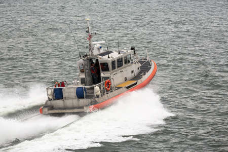 NEW YORK - SEP 3: A U.S. Coast Guard boat on patrol on September 3, 2011 near Liberty Island, New York. As of August 2009 the Coast Guard had approximately 42,000 men and women on active duty.