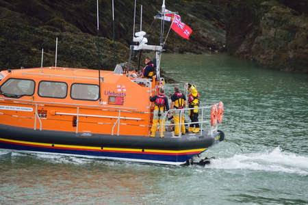 Worthing Pier, Worthing, UK, 28th June 2009 lifeboat / lifeboat crew, dinghy and helicopter of the UK R.N.L.I. coastguard