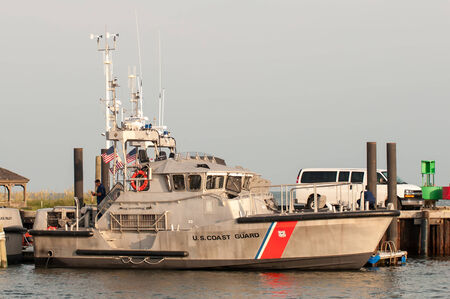 Hatteras, NC, USA - August 8, 2014 : u.s. coast guard boats at cape hatteras uoter banks