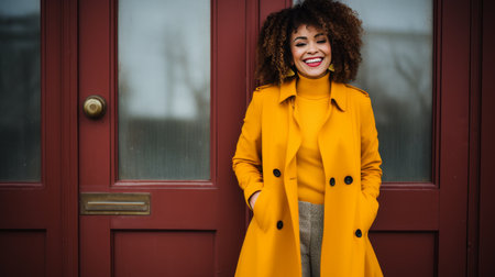 Joyful 40 year old african american businesswoman in bright attire, studio portrait