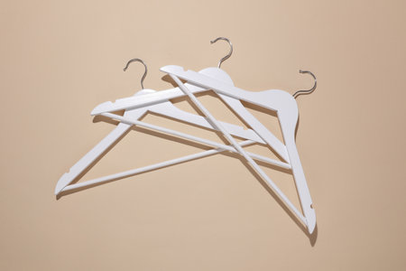Wooden Clothes Hangers fashion. Isolated in dressing room