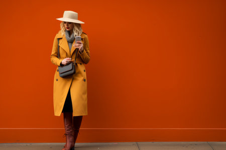 Stylish woman in orange suit exudes boldness, brightness, chicness