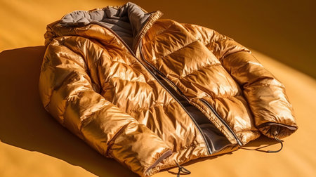 A luxurious golden down jacket, perfect for winter. Warm, stylish and comfortable, perfect for a premium look.