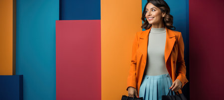 Stylish Shopper, Woman with Bags on Clean Minimal Background