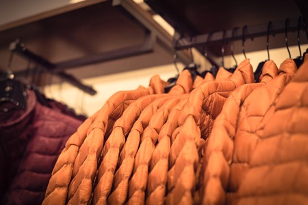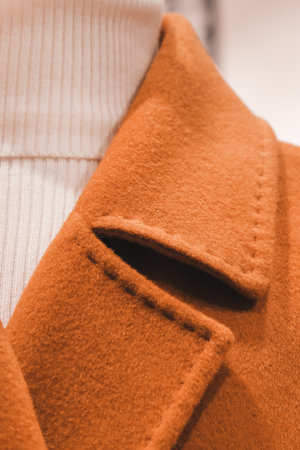 A close-up of a stylish orange jacket hanging neatly on a wooden hanger. The vibrant color and texture stand out against a soft background, adding a touch of modern fashion to any wardrobe.