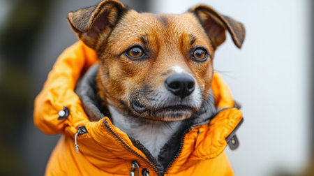 A charming dog dressed in a vibrant orange coat gazes with curiosity, enjoying a cool day outside.
