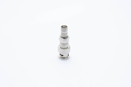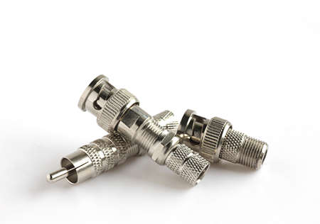 Group of BNC connectors used for coaxial cable. Objects isolated on white background