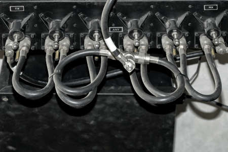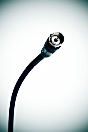 Closeup of coaxial cables used for TV. Electrical cable with an inner conductor and an outer shield, used to carry high frequency electrical signals.