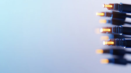 This detailed close-up showcases high-quality electrical cables featuring copper connectors, perfect for emphasizing technology and engineering themes.