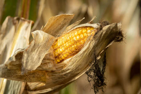 corn field on crop plant for harvesting.
