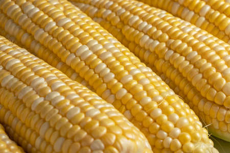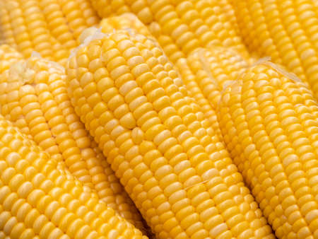 Sweet corn ears background. Close-up photo.