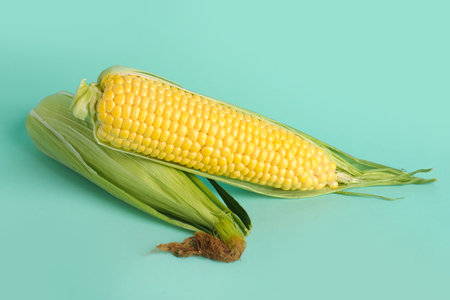fresh organic corn on blue background