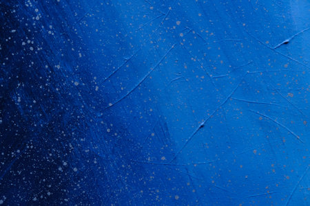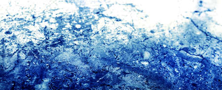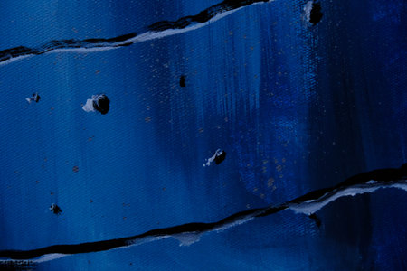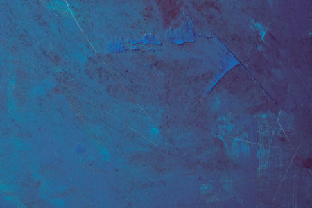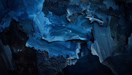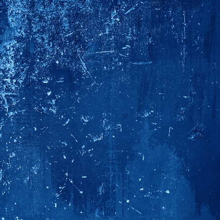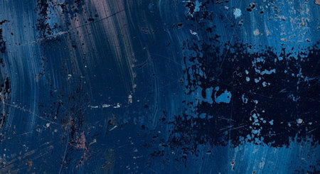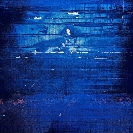 Deep blue abstract paint textures with peeling layers and rough, broken surfaces create a moody, distressed background.