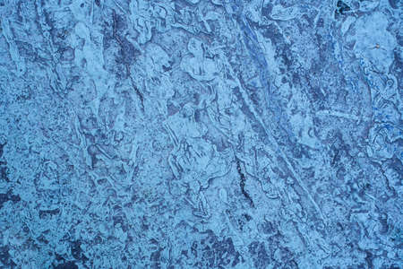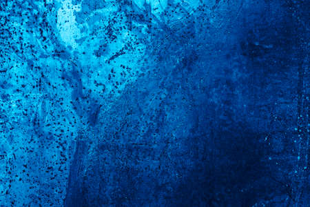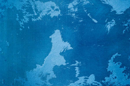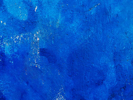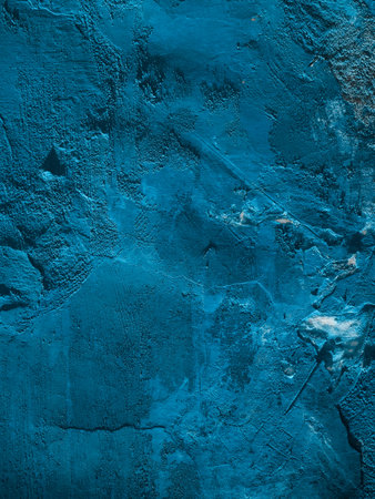 Vintage blue background. Rough painted wall of sapphire color. Imperfect plane of blue colored. Uneven old decorative toned backdrop of cyan tint. Texture of sapphirine hue. Ornamental stony surface.