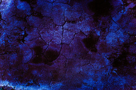 This image presents an abstract textured background primarily in shades of blue. The rough, uneven surface creates a sense of depth and visual interest. Strong lighting emphasizes the texture, adding a dramatic effect. Suitable for various design applications and commercial uses, offering a versatile visual element.
