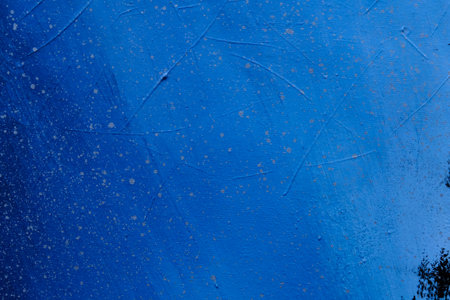 Blue painted stucco concrete with leaking traces of paint. Abstract old grunge wall texture background