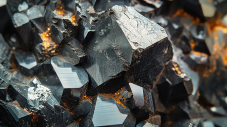 Stunning Close Up View of Black Mineral Crystals With Shimmering Orange Accents in Natural Formations Captured in High Detail. Generative AI
