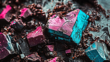 Unique Collection of Metallic Blue Crystals Showcasing Intricate Details and Textures in Natural Formation. Generative AI
