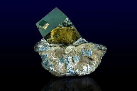 Macro Pyrite mineral stone on black background close up