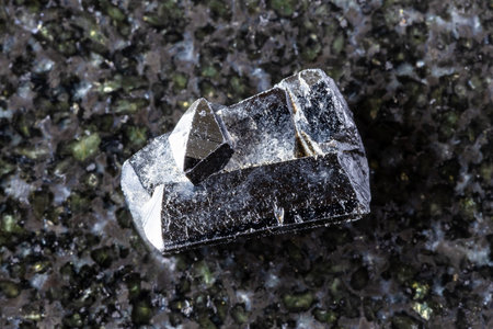 sample of natural ilvaite mineral on black granite background close up from Dalnegorsk, Primorye, Russia