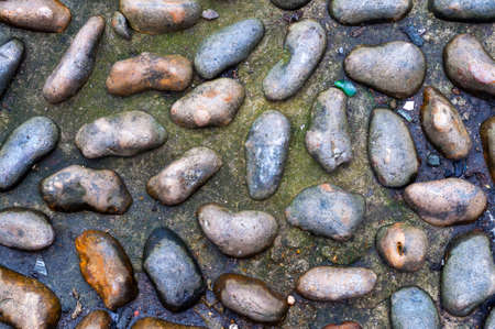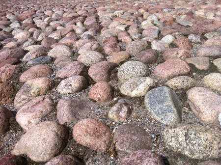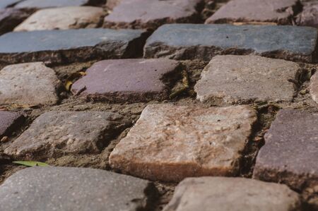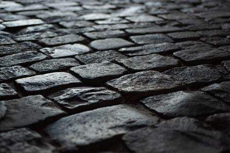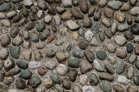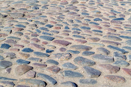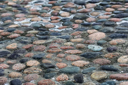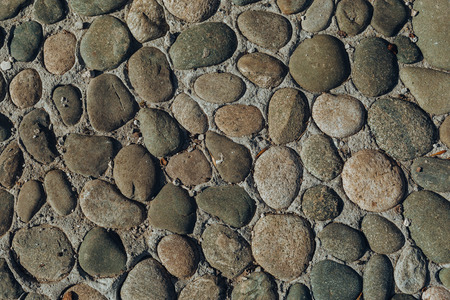 Old cobbles pattern, cobblestone texture, close up view, stone background.