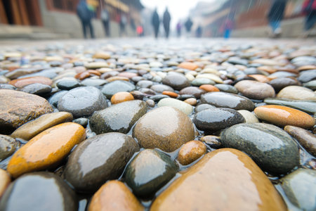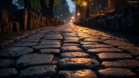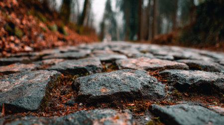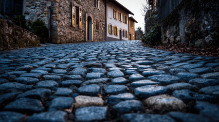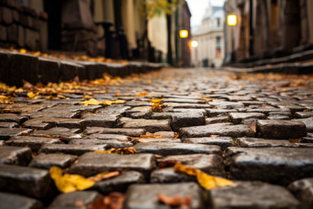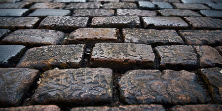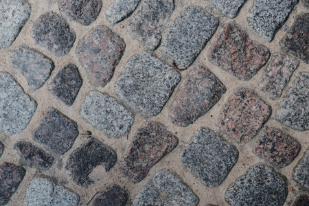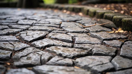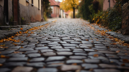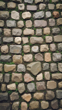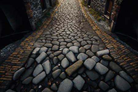 A picturesque stone pathway made of cobblestones and bricks, a testament to architectural heritage, creating a textured background for urban scenes