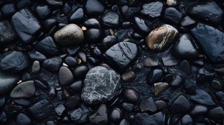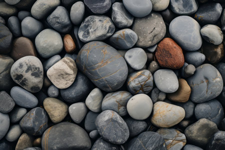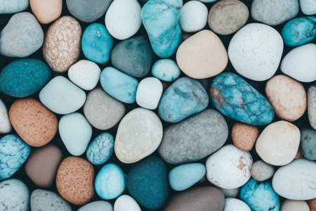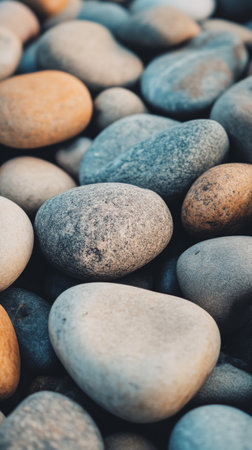 Smooth stones of various colors and textures, close-up view. Natural patterns and textures concept